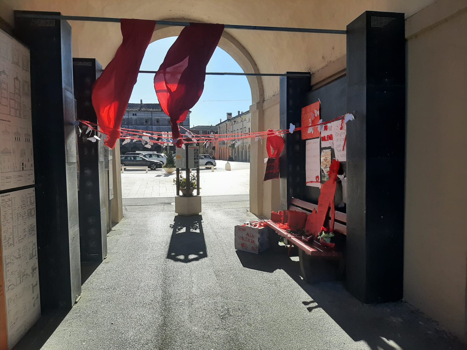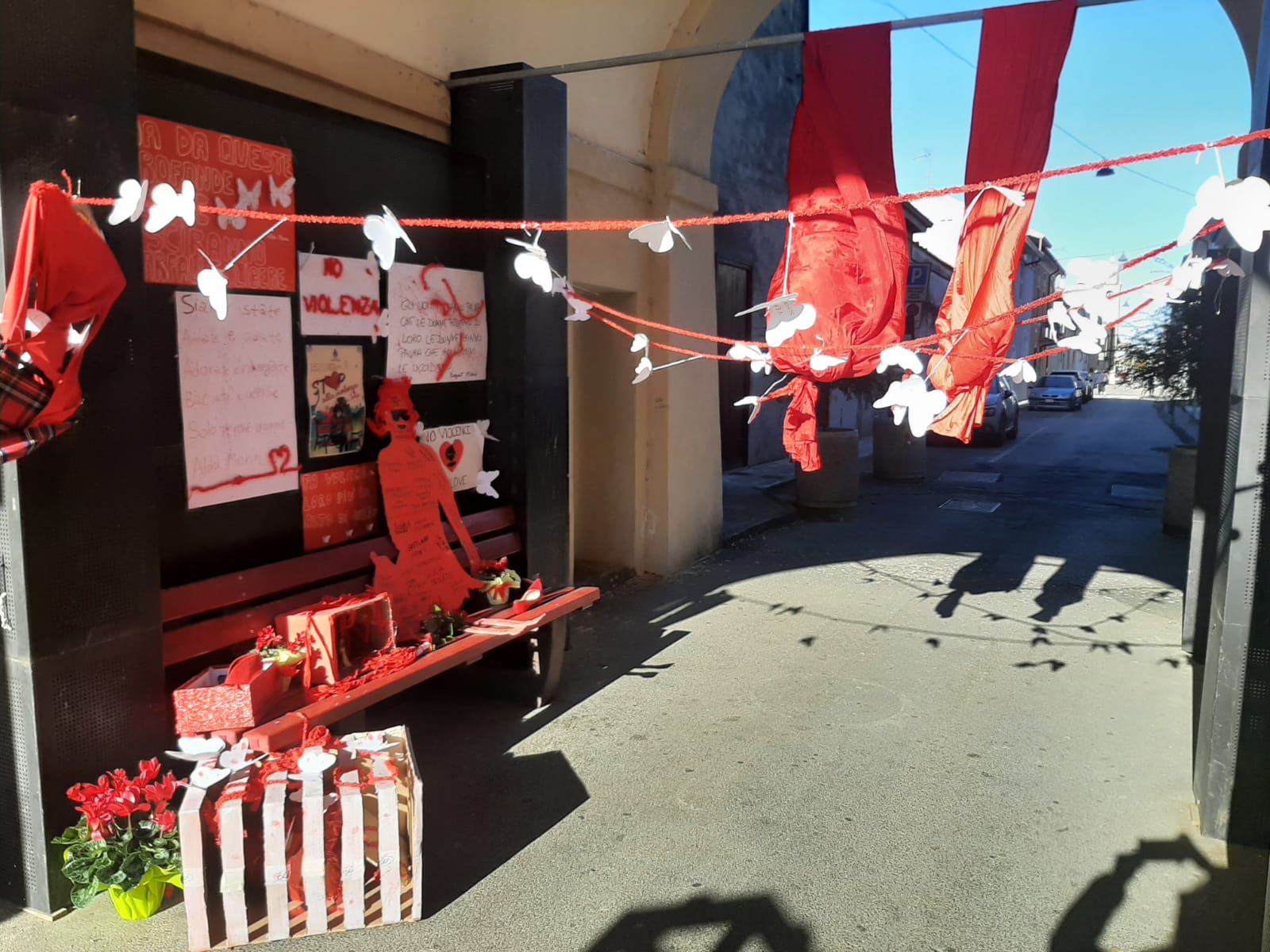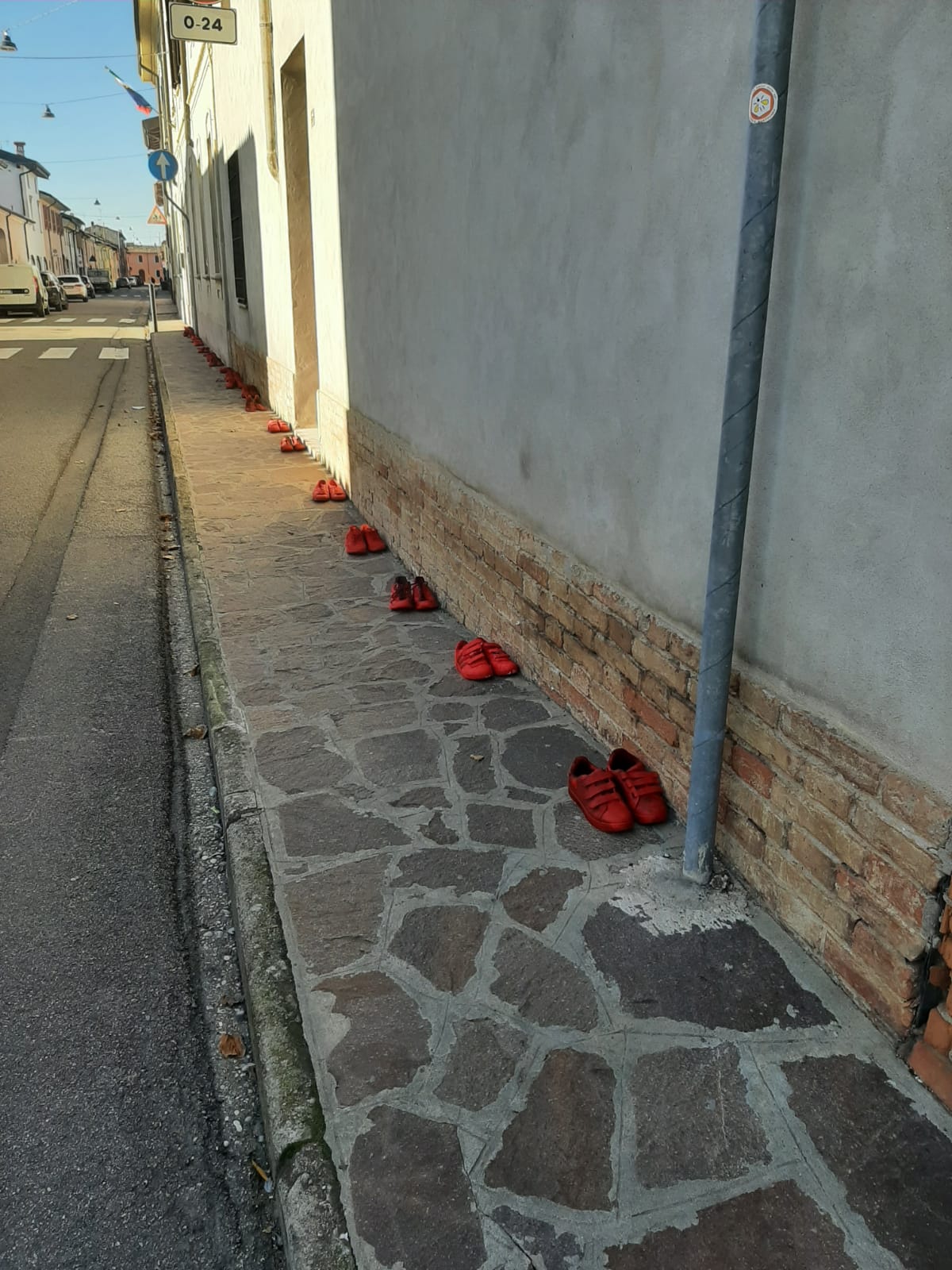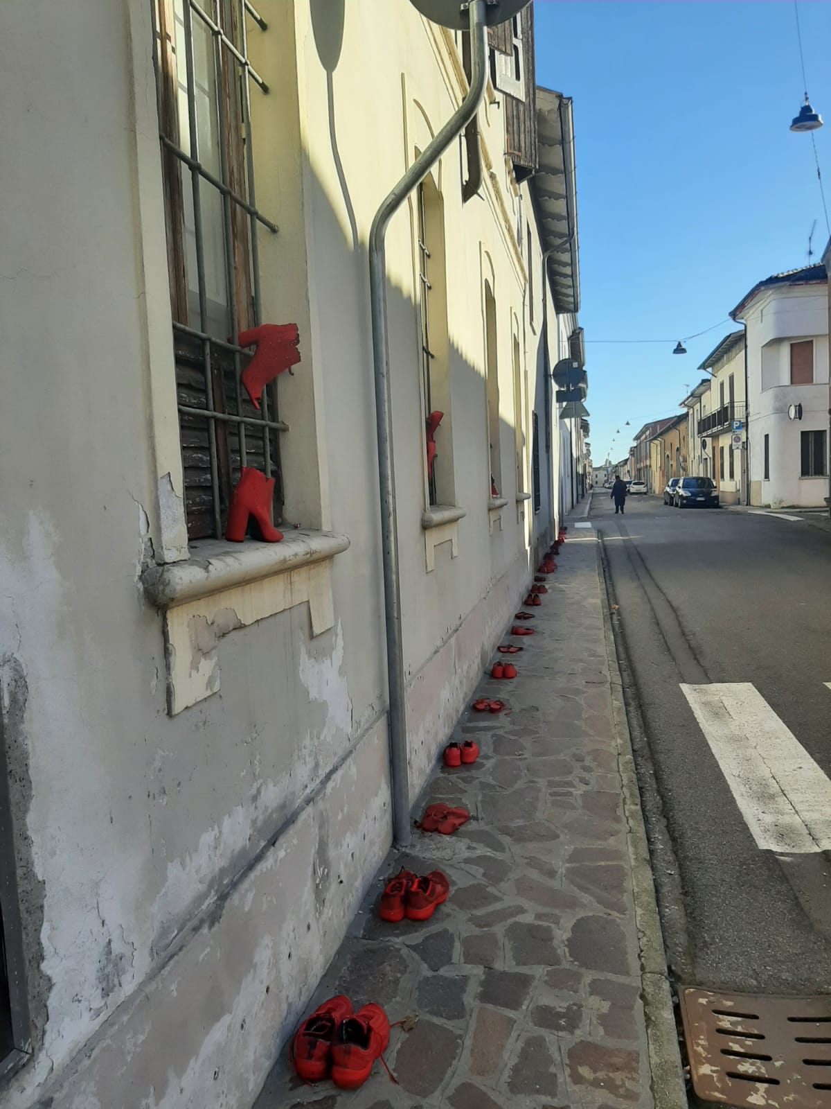 della performance SCARPE ROSSE IN FILA, per contribuire idealmente alla marcia pacifica di Scarpe Rosse per rompere un silenzio assordante e urlare: STOP ALLA VIOLENZA SULLE DONNE!